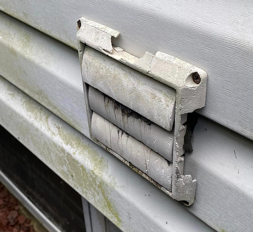 This vent is 99% restricted by a screen that is not permitted by code. We see this on a daily basis and it is a significant safety issue.